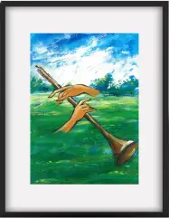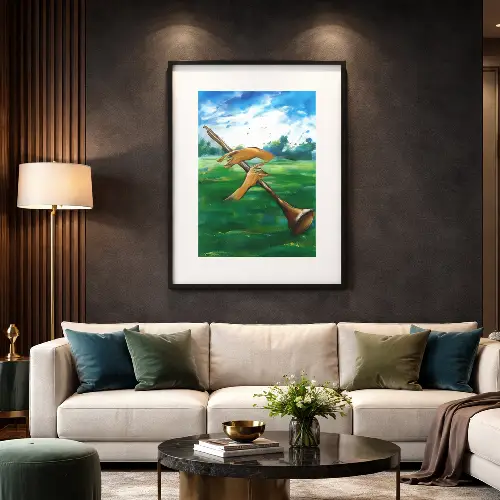 Call Across the Fields evokes a sense of heritage carried on open air, where sound and space feel expansive and unbound. The composition balances grace with openness, allowing tradition to meet a contemporary visual language. Designed for elevated interiors, this artwork brings depth, character, and a quietly resonant presence to the space.